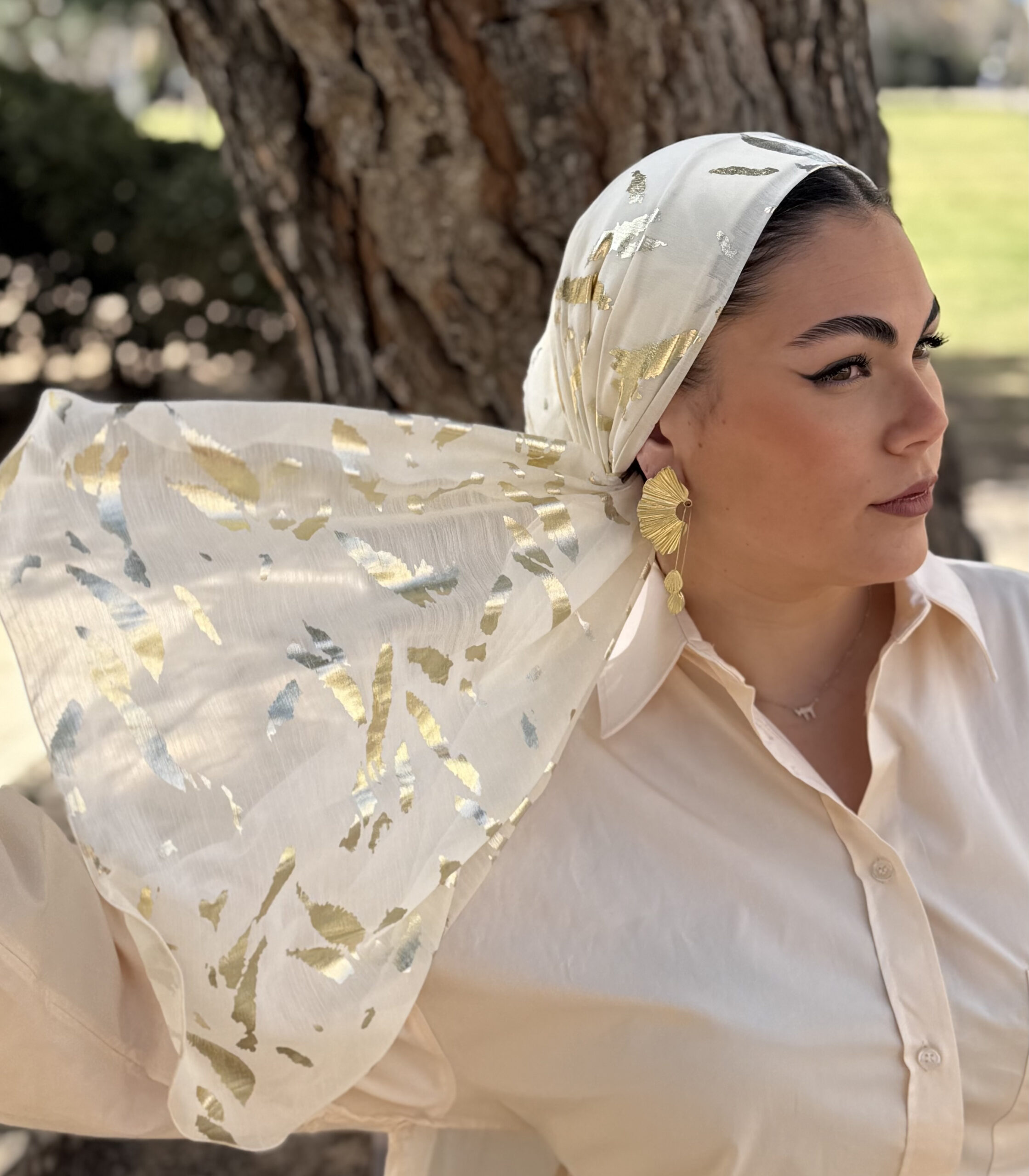 מטפחת ערב מנומרת שמנת וזהב